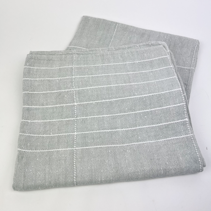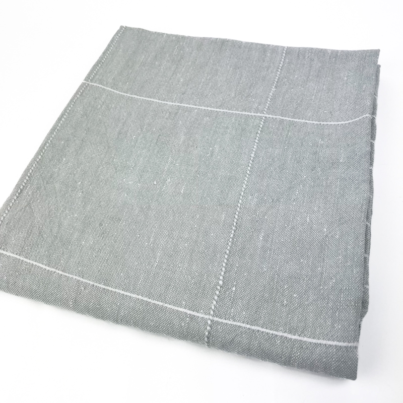 Sart grøn retro dug i kraftig vævet hør med fine hvide striber og klassisk opdeling.