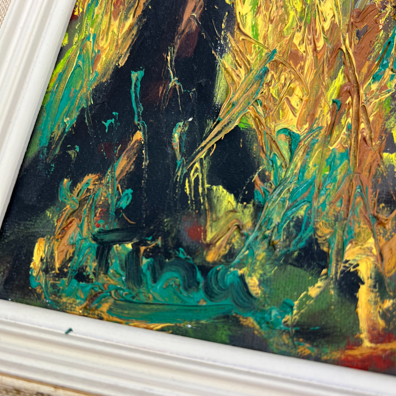 Originalt vintage maleri udført i akryl på lærred med kraftige, levende penselstrøg.