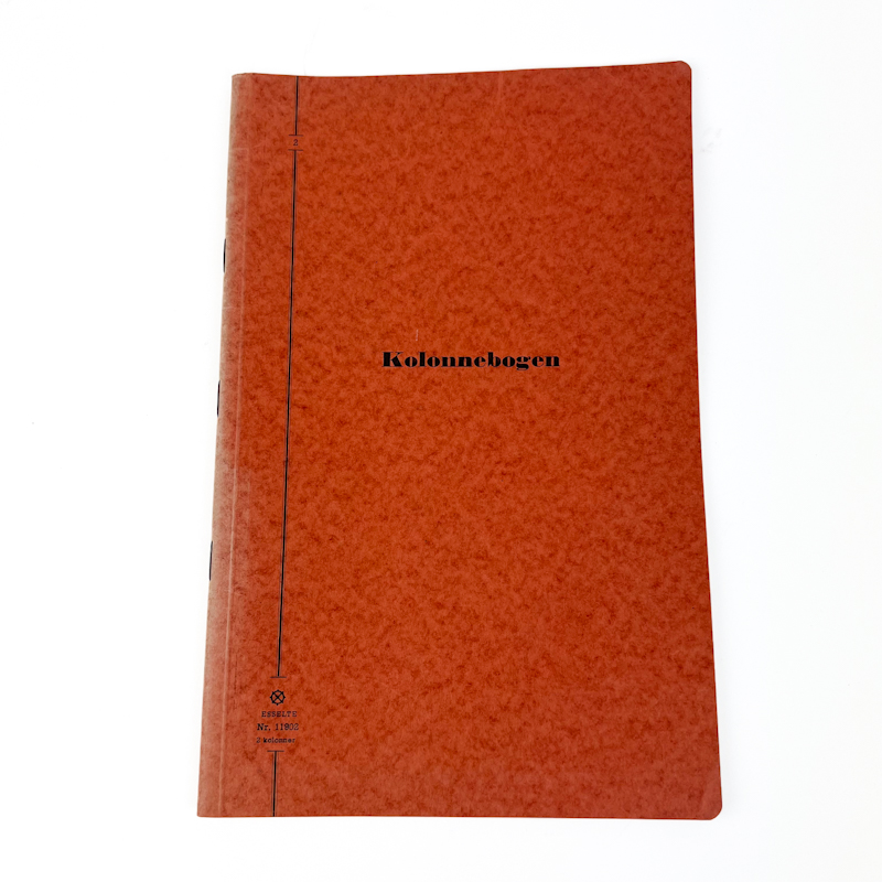 Original vintage kolonnebog fra Esselte med klassisk rød marmoreret forside.