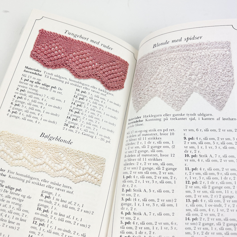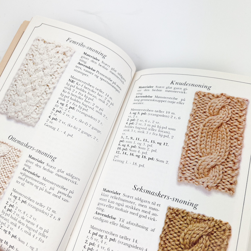 Indeholder både grundteknik, strukturmønstre og detaljerede opskrifter med tydelige illustrationer.