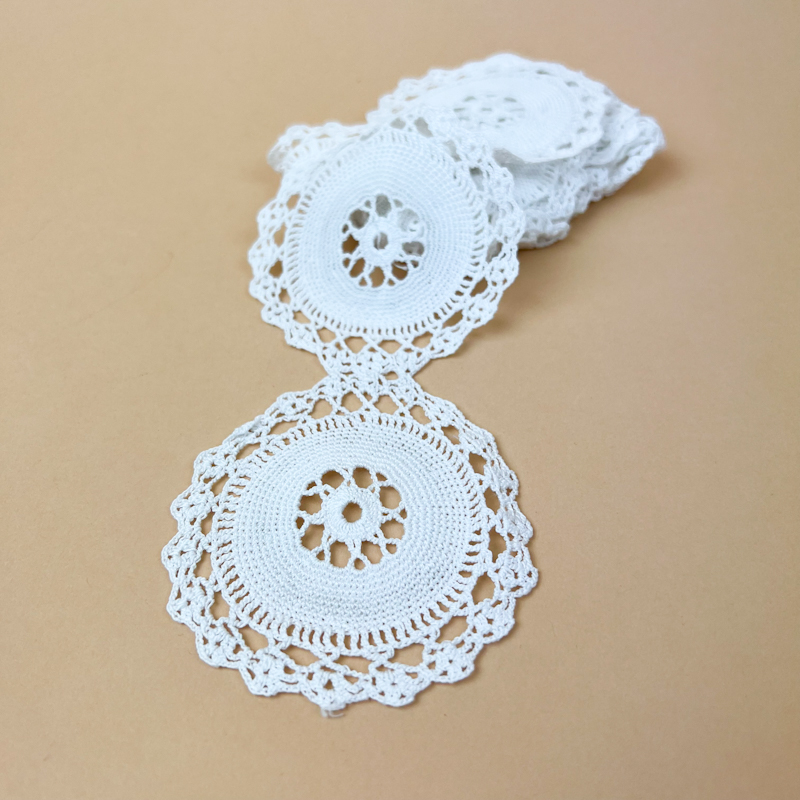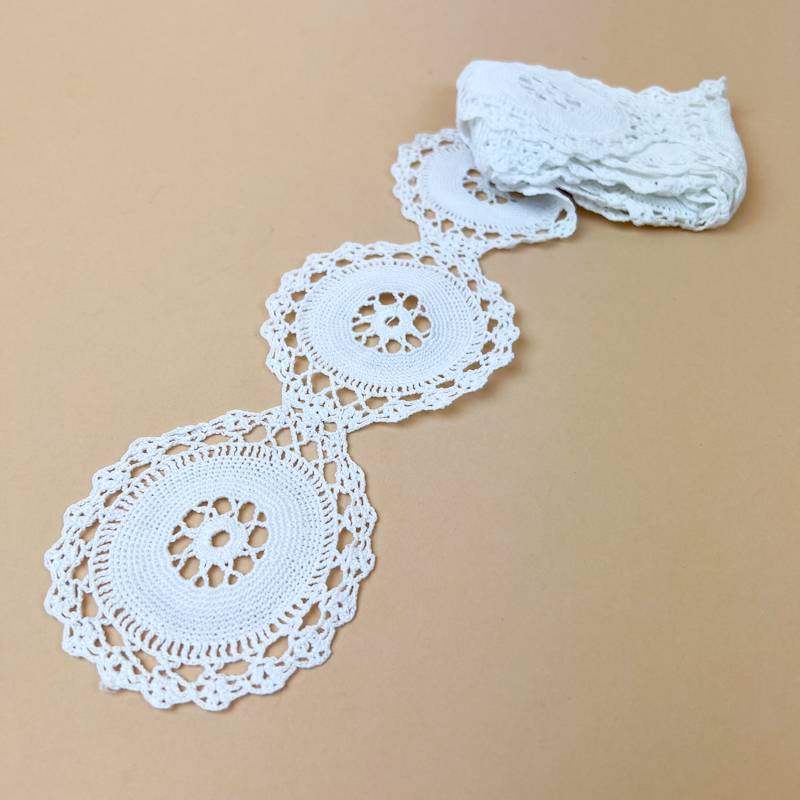 Fin vintage blonde i hvid med runde hæklede motiver og dekorativ kant.