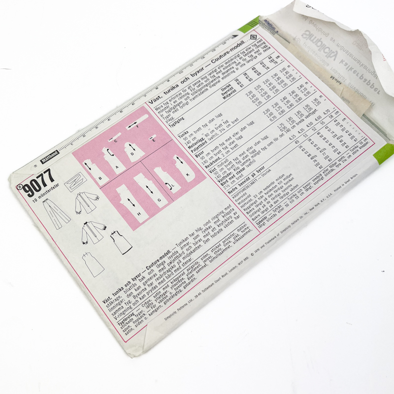 Originalt vintage symønster fra 70’erne med klassiske modeller til vest, tunika og bukser.