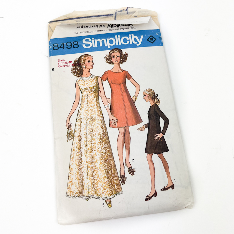 Originalt vintage symønster fra Simplicity med flere kjolemodeller i både kort og lang version.
