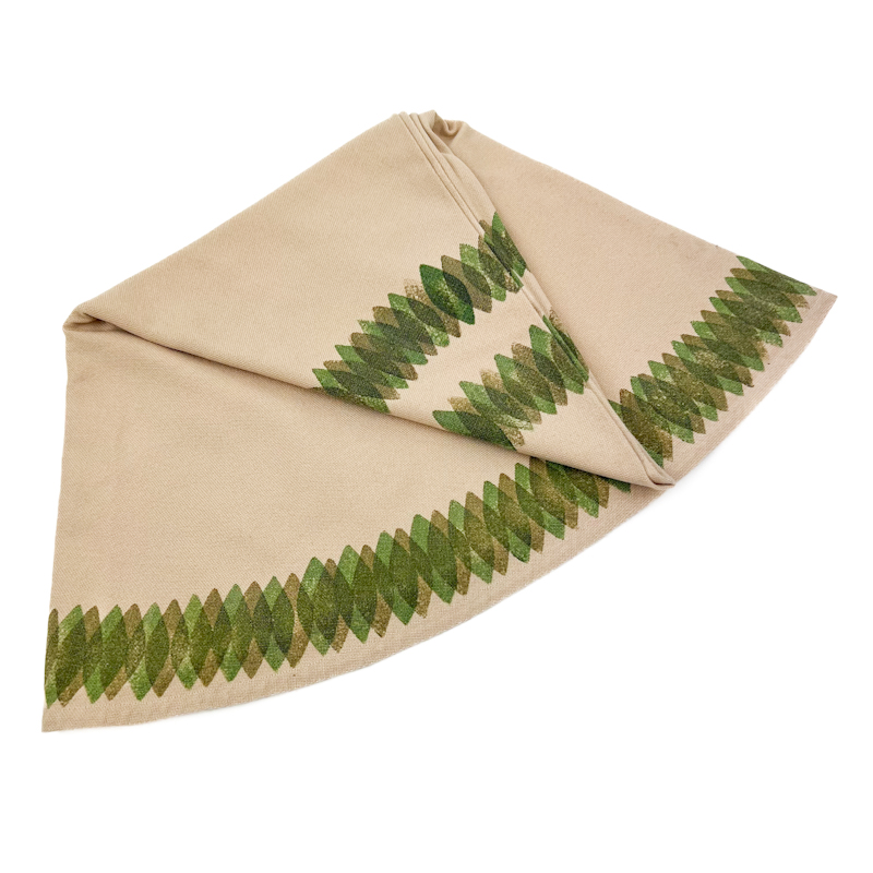 Dugen måler 130 cm i diameter og har et grafisk mønster langs kanten.