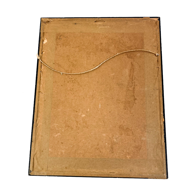 Indrammet bag glas i sort træramme med original bagside i pap.