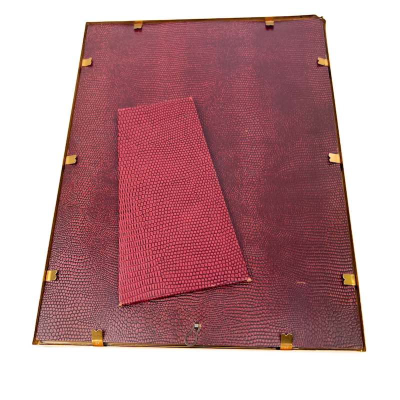 Udført i metal med glas og original bagside i præget materiale.