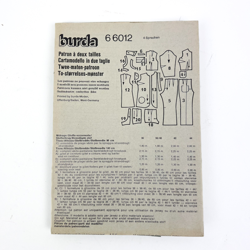 Vintage symønster fra Burda med buksedragter og todelte sæt i klassisk 70’er stil.