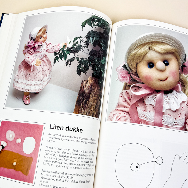 Fin retro hobbybog “Dukkehobby” med mange detaljerede projekter og mønstre til håndarbejde.
