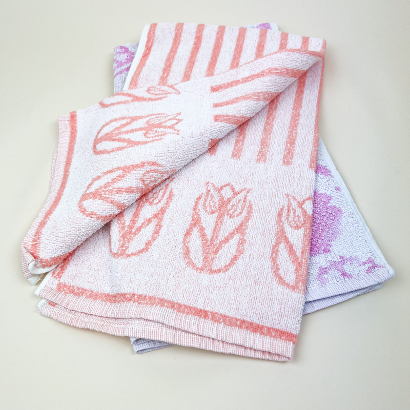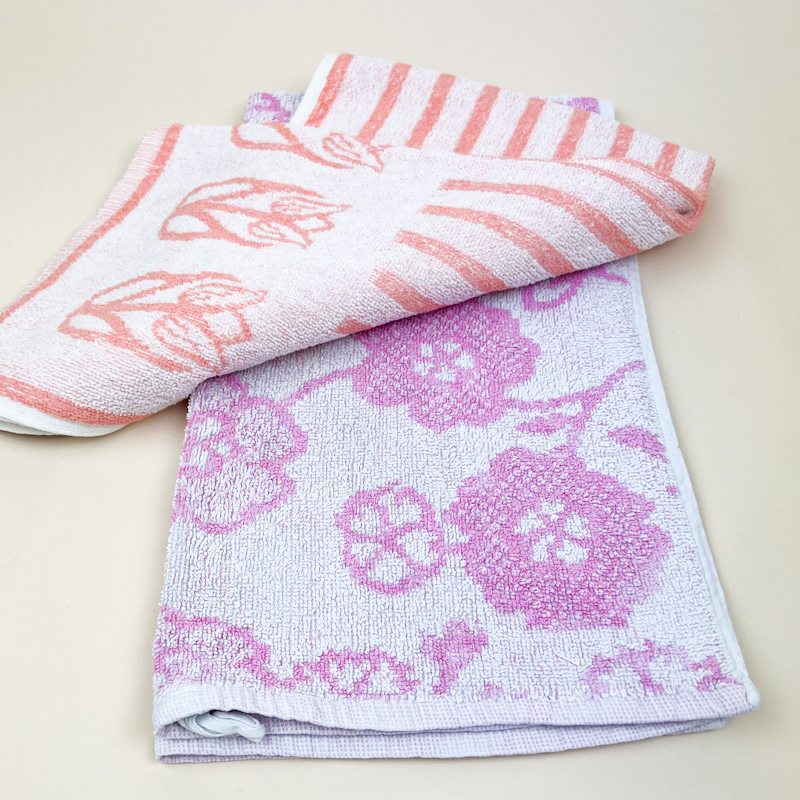 To fine retro håndklæder i bomuld med vævet mønster i rosa og lilla nuancer, 50 x 90 cm